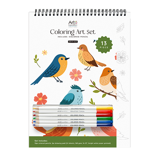 Includes: 12 colored pencils, 1 coloring book (9×12”, 24sheets, 160gsm)