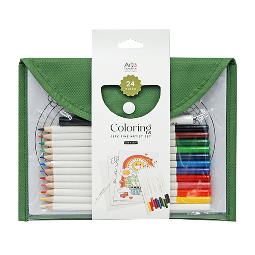 24PC coloring Set Includes: 12 colored pencils, 1 fine liner, 1 pack pre-print marker paper – 10 sheets